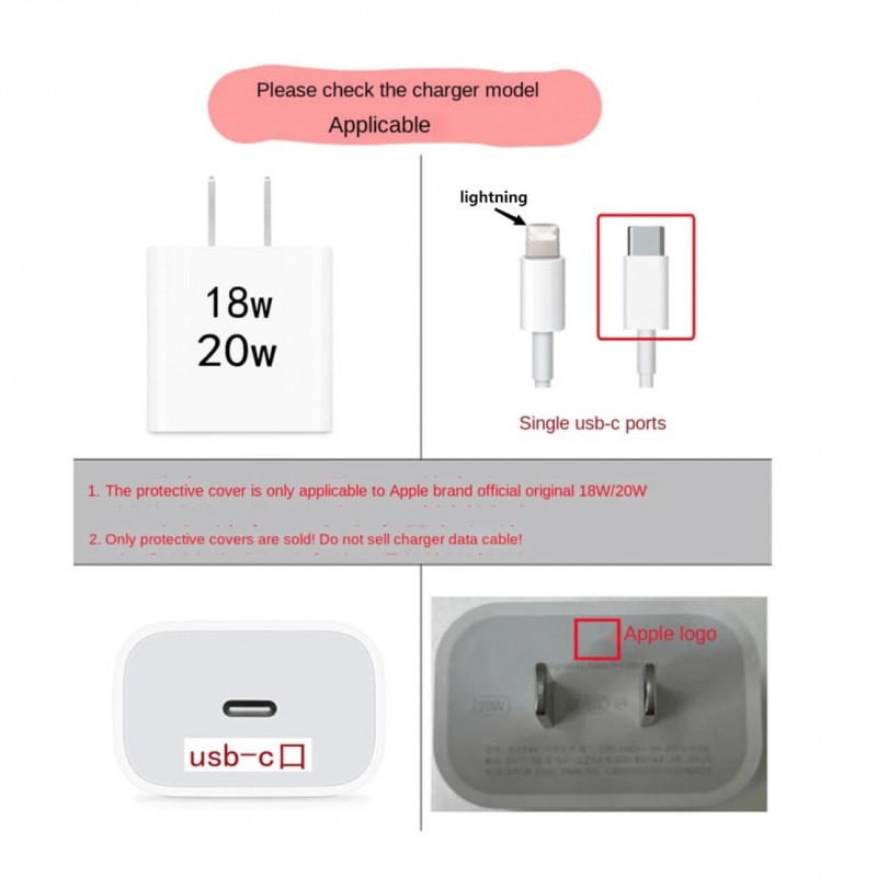 Set de 5 piezas de cargador de teléfono de 20W/18W con diseño de corazón multicolor, protector de ca
