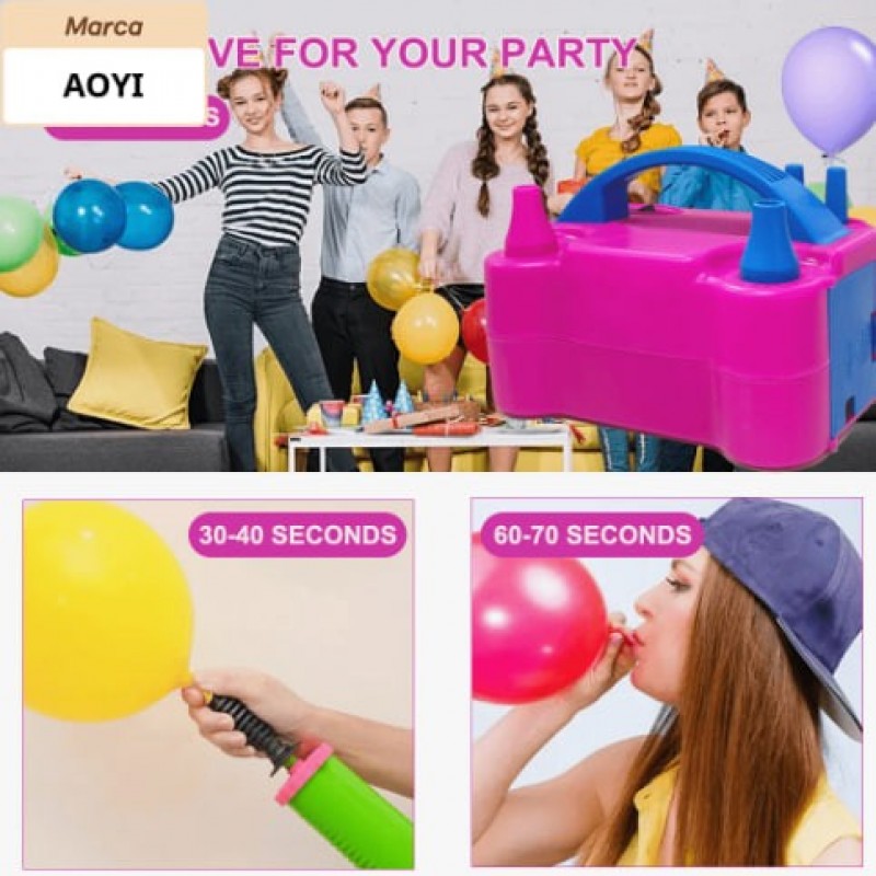 AOYI Bomba eléctrica mini para globos, inflador eléctrico portátil de 600W con doble boquilla para d