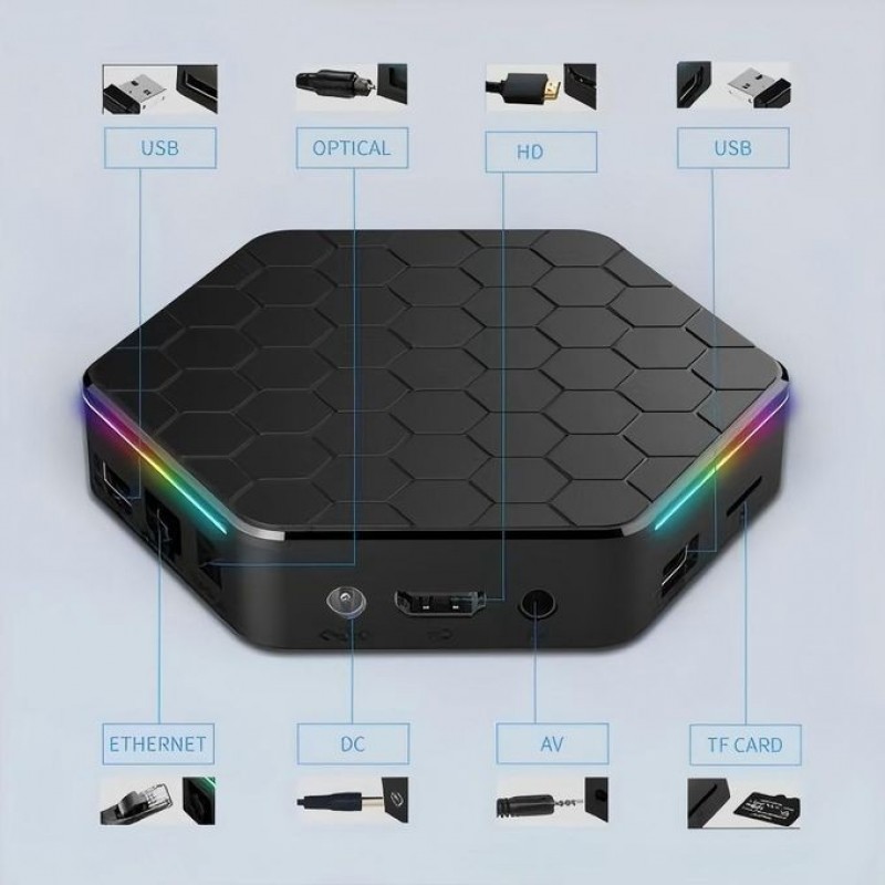 T95Z Plus Smart Android TV Box can change your traditional TV & LCD monitor into a multimedia center by connecting the Internet (Via WiFi or RJ45). This smart Android TV Box will bring you much fun and convenience with its powerful feature: Android 12.0, Allwinner H618 Quad-core A53 CPU, Mali-G31 GPU, 2GB RAM and 16GB ROM, 4GB RAM and 32GB ROM, 4GB RAM and 64GB ROM optional, 6K video hardware decoding, 2.4G & 5G WiFi6, BT5.0 and 100M LAN. Simply plug it into your TV, and you are ready to go!