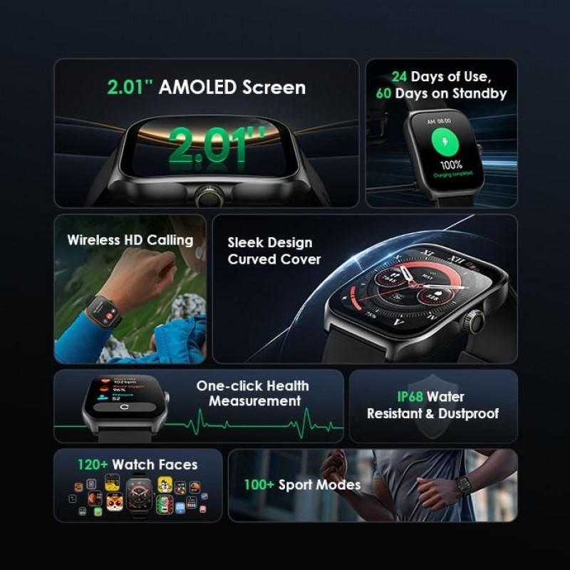 Oraimo Watch Nova AM 2.01" AMOLED Screen Curved Cover Smart Watch